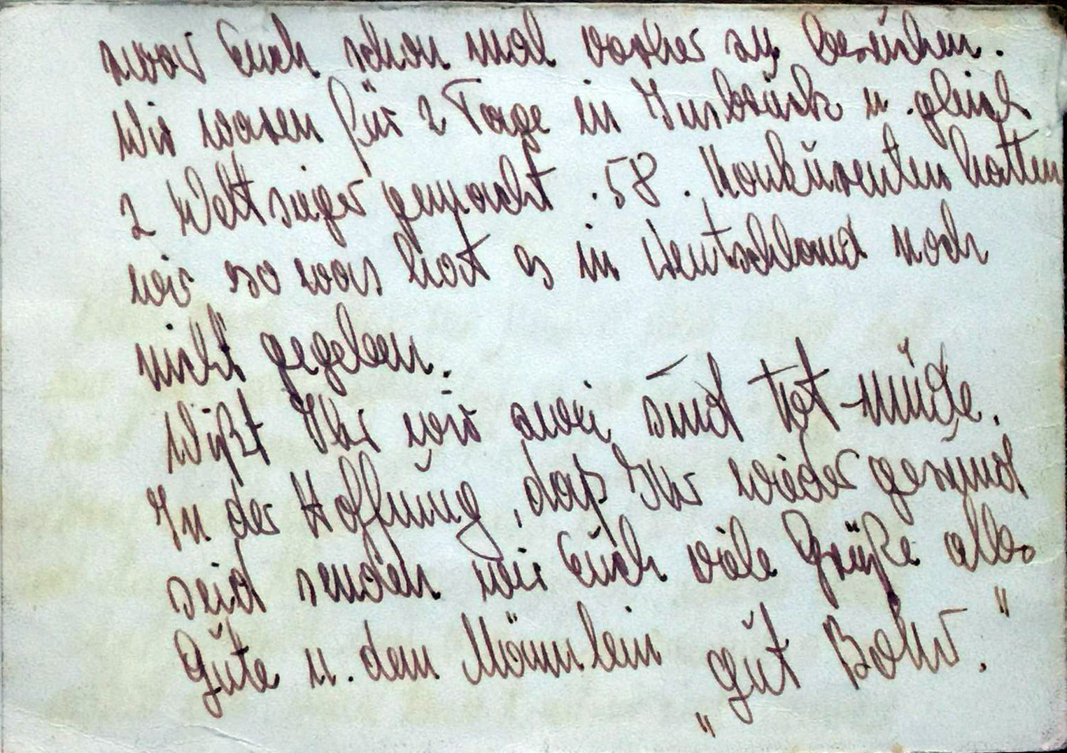 Monika talked to Gertrud’s former landlord in Niederweiler about the plans and found out that some big boxes with VHS tapes, a slide projector, and over 1000 slides were still stored in the attic, over 6 years after Gertrud had passed away. Monika recovered the items and found a handwritten note that was stored with all the slides in one of the boxes. She sent everything to us to Colorado so we could share it with all of you. The note was written by Gertrud Biewer less than 5 months before she passed away. We think it is great to know that she was OK with the idea to share them.