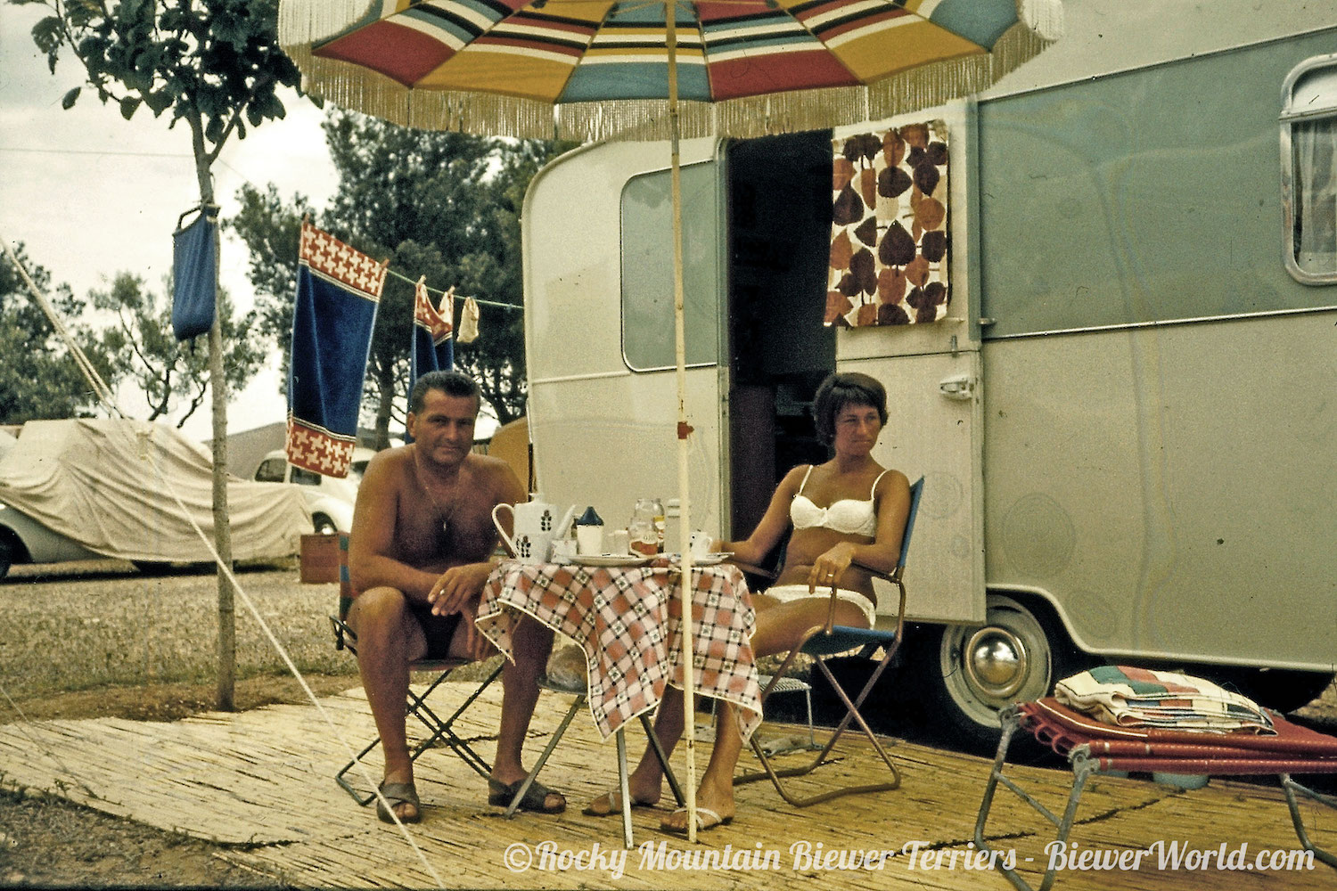 As you can see in the pictures, there is barely a photo without a dog. Their home in Hirschfeld was near an old Military base and when soldiers had to return home, they sometimes left their dogs behind. Gertrud took many of them home. Their favorite thing was camping. They could always take their dogs and sometimes Gertrud would even bring a stray dog from the Campground home. The black Tibetan Terrier mix that we’ve seen on many photos before, came from a Campground in Spain. He lived a very happy and long life with the Biewers.